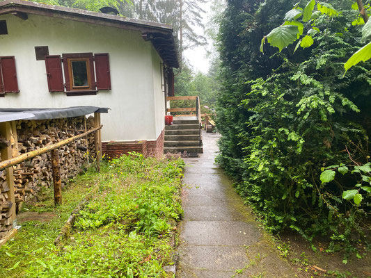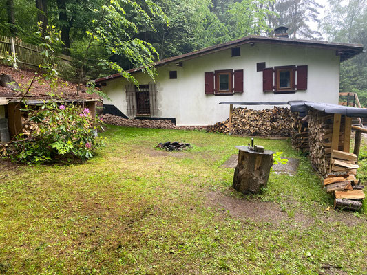 Wenn wir gerade nicht mit dem Fahrzeug in der Welt unterwegs sind, lieben wir die Ruhe in unserer Waldhütte.